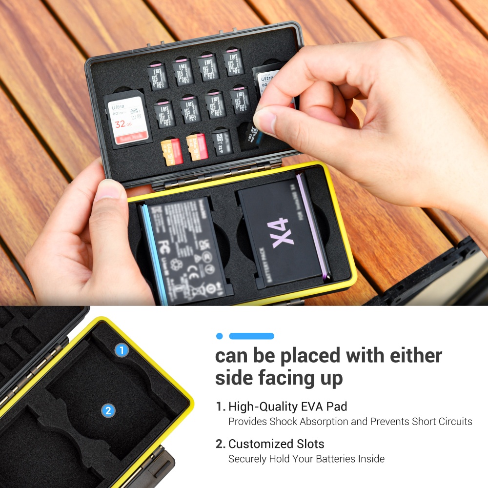 - EVA Foam Padding:Custom EVA foam padding and each slot is tailored to fit the cards and batteries to make it not easy to fall off. Protect your accessories from moisture and accidents and keeps them organized in one place.