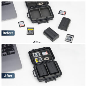 • IP67 Waterproof & Full Protection:High-strength ABS shell, strong and durable.The memory card storage box is scratch resistant and dustproof.IP67 Waterproof,Silicone seal ensures a dry and safely protected inside.