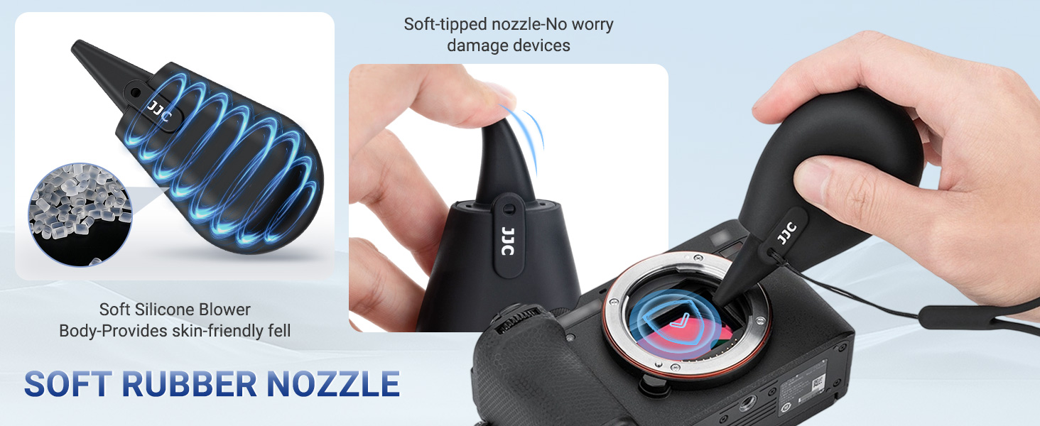 - Soft Silicone Tip:Scratch proof soft silicone air nozzle 29.5mm/1.16″ long,The soft silicone tip of the air blower pump blaster ensures safe and scratch-free cleaning,it perfect for delicate surfaces like camera lenses and computer screens.