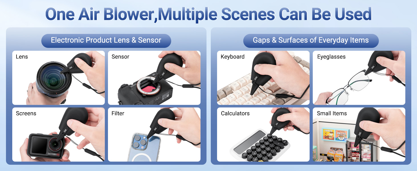 - Multipurpose:The Lens Dust Air Blower is perfect for cleaning pc keyboards,alcohol ink art projects,watch repair,LCD screens,camera sensor,binocular lens,telescope lens, filters, succulent plants,etc.Small and compact, especially suitable for users with small hands. Smaller in size compared to traditional air blowers, it is easy to carry.
