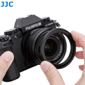 JJC LH-Q Series Lens Hood is designed for lenses with corresponding filter thread sizes and includes one adapter ring and one lens hood. The adapter ring is made of premium aluminum alloy, making it lightweight and durable, while the lens hood is constructed from ABS material, providing a strong structure suitable for various shooting environments. The inner wall of the lens hood features a matte finish to effectively reduce or eliminate lens flare. By extending the front end of the lens, it helps block unwanted stray light and enhances physical protection, reducing the risk of accidental impact. The lens hood supports reverse mounting for easy storage and carrying. Once installed, it does not interfere with the use of filters or the original lens cap of the corresponding diameter.