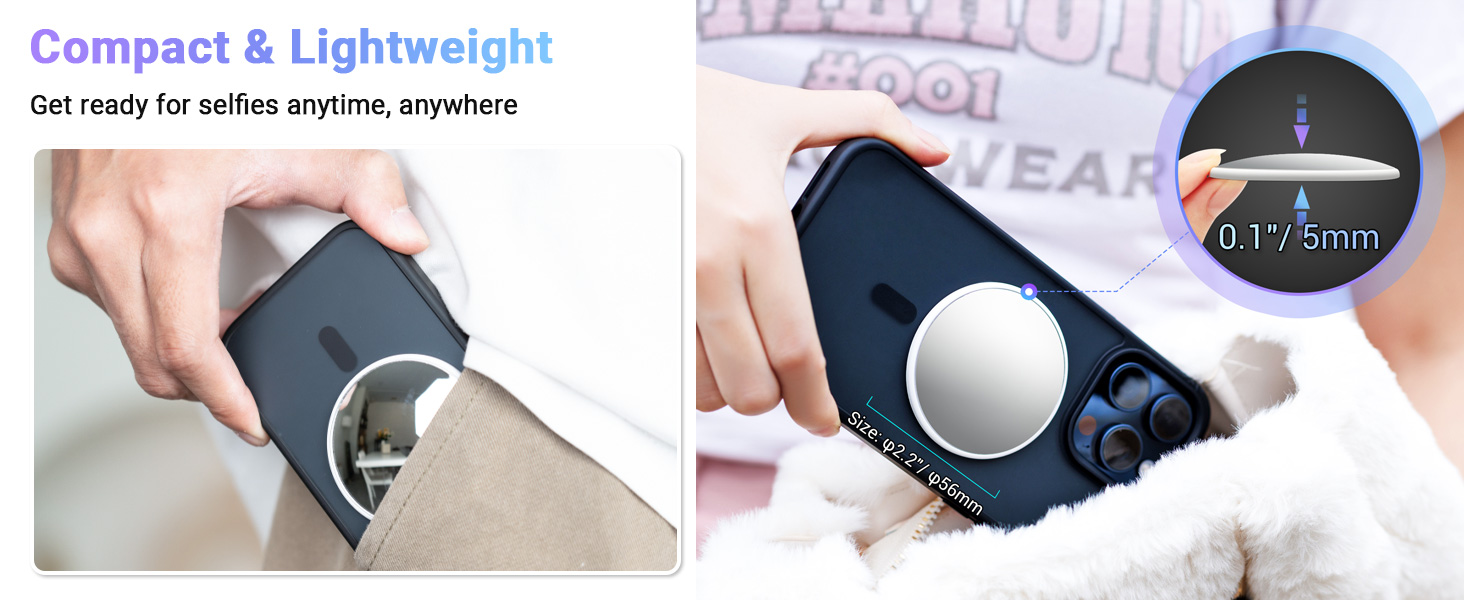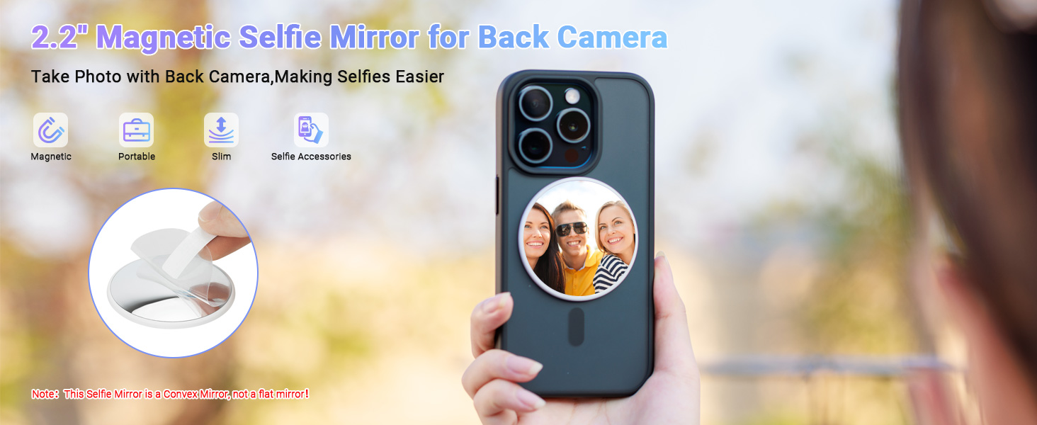 2.2″ Magnetic Selfie Mirror for Back Camera,Slim Phone Convex Mirror for Magsafe Compatible with iPhone 17 16 15 14 13 Pro Max Plus,Mag-Safe Case & All Phone for Wide Angle Selfies &Vlogging&Streaming