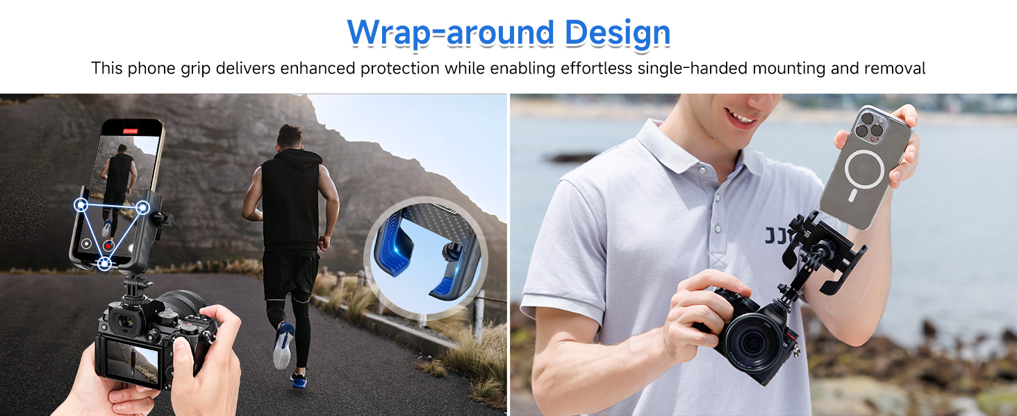 • Secure & Single-Handed: Engineered with semi-wrap phone clamp that firmly cradle your device. Insert/remove phone single-handedly while preventing accidental drops – even during dynamic shoots.
