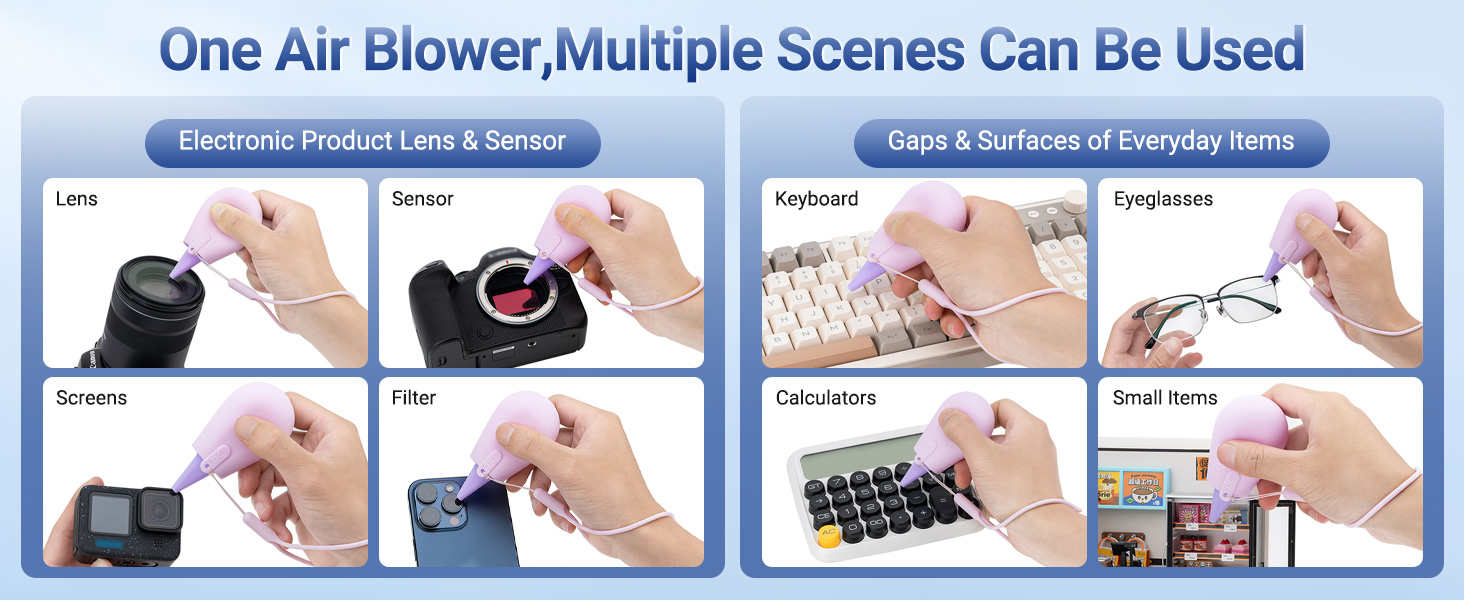 - Multipurpose:The Lens Dust Air Blower is perfect for cleaning pc keyboards,alcohol ink art projects,watch repair,LCD screens,camera sensor,binocular lens,telescope lens, filters, succulent plants,etc.Small and compact, especially suitable for users with small hands. Smaller in size compared to traditional air blowers, it is easy to carry.