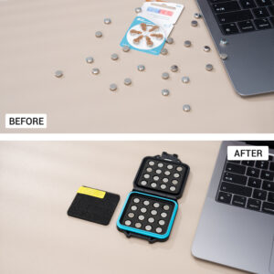 - COMPACT & LIGHTWEIGHT:Product size: 3.12*2.74*0.64 inches. Compact size can be easily carried on the go or put into pockets and bags. And comes with an anti-lost Lanyard. It is a good choice to friends who have many hearing aid batteries.